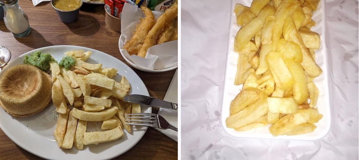 Stunningly good fish and chips at a bargain price. Pukka pies also served. Restaurant is upstairs, it isn't fancy, but a really great place. I last came here 20 years ago, and if anything, it is better. No greasy chips here!